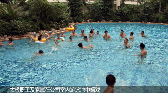 ??“上班努力工作,下班享受生活”,太極公司非常重視員工生活,視員工為親人,為他們提供一流的工作環(huán)境,高標(biāo)準(zhǔn)的員工餐廳,舒適的公寓,休閑的運(yùn)動(dòng)場所,讓員工時(shí)刻感受到太極大家庭的溫暖。2006年太極公司在緊鄰廠區(qū)另購?fù)恋?0畝,投資8000余萬建成了約6萬平米的職工單身公寓樓,每人50平米房間,統(tǒng)一配置電視、網(wǎng)絡(luò)、洗浴間、床柜、空調(diào)、暖氣、桌椅一應(yīng)俱全。生活區(qū)還配備了3D電影院、超市、兒童樂園、衛(wèi)生所、棋牌室、健身房、乒乓球室、臺(tái)球室、羽毛球館、籃球場、露天健身器械等,并不斷舉辦各種文化體育活動(dòng)豐富職工生活。