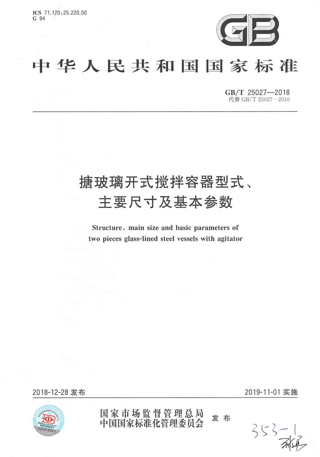 參與起草制定《搪玻璃閉式攪拌容器》國家標準