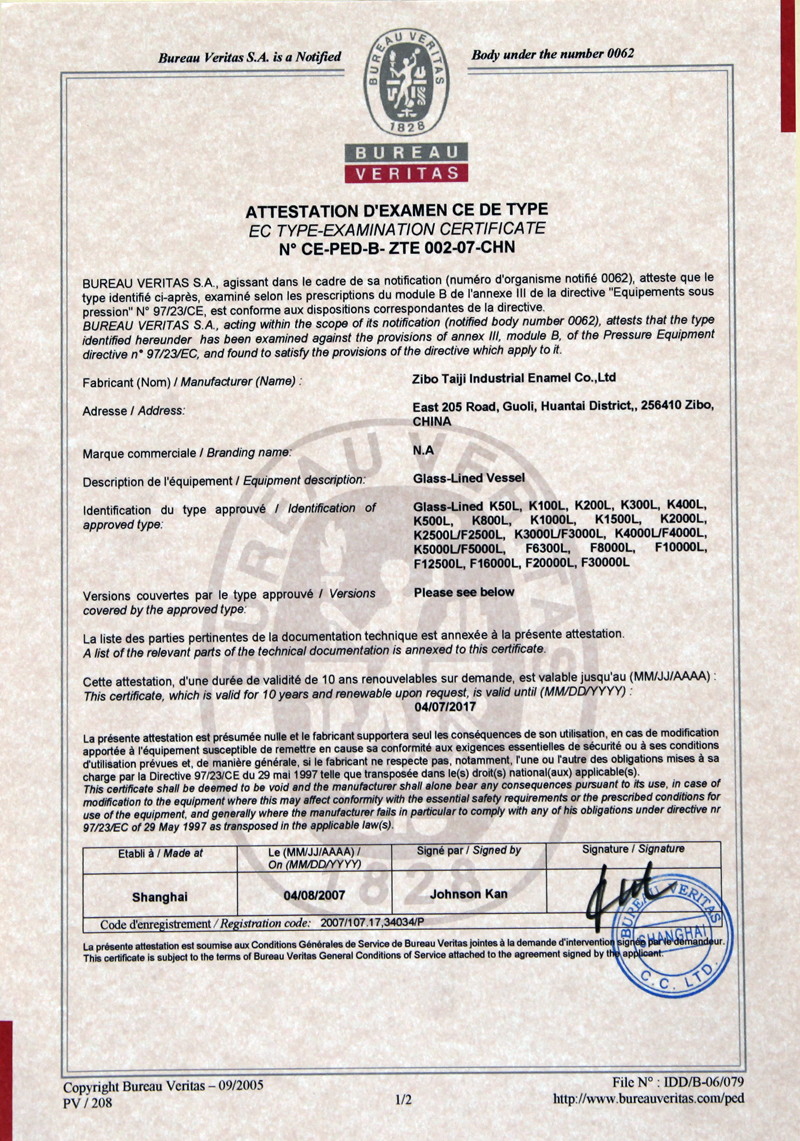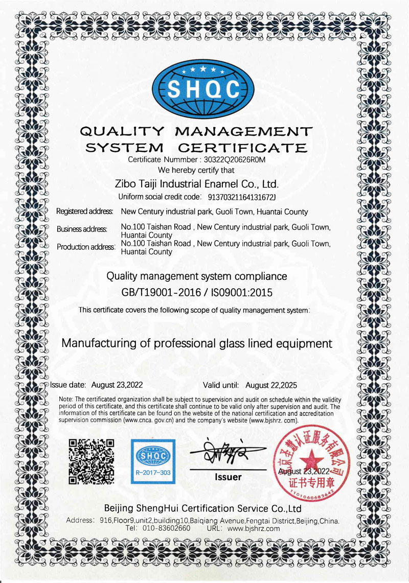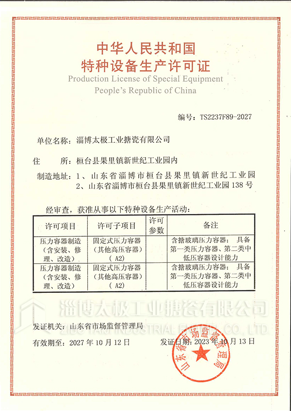 參與起草制定《搪玻璃開式攪拌容器》國家標準Copyright ? 淄博太極工業(yè)搪瓷有限公司 All Rights Reserved 備案號: 魯ICP備13005388號-5
