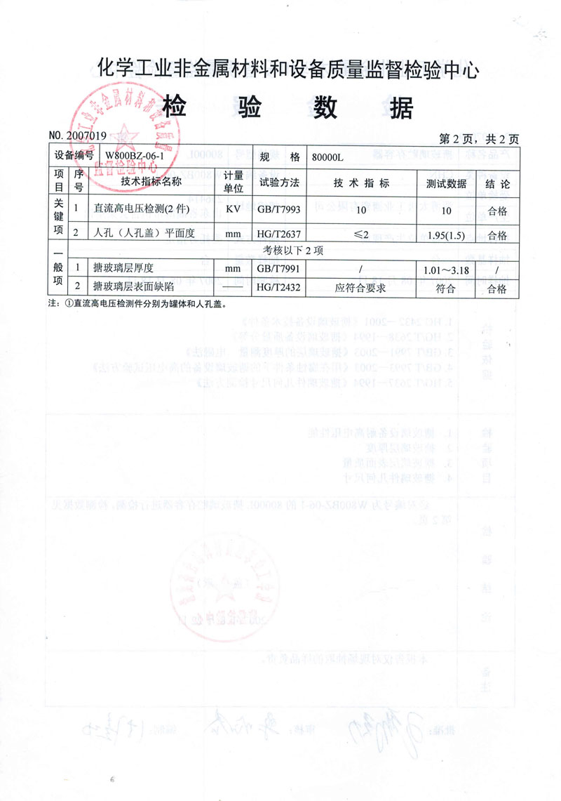 搪玻璃設備合格檢驗報告