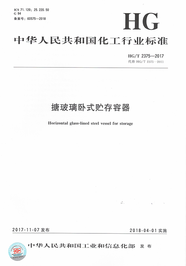 參與制定搪玻璃臥式貯存容器行業(yè)標準