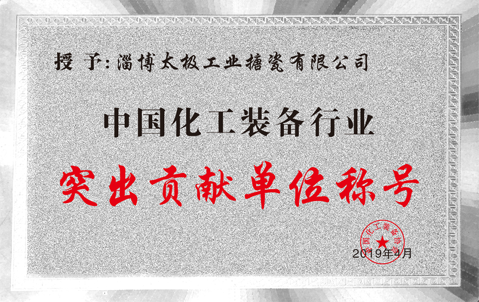 中國化工裝備行業(yè)突出貢獻單位稱號